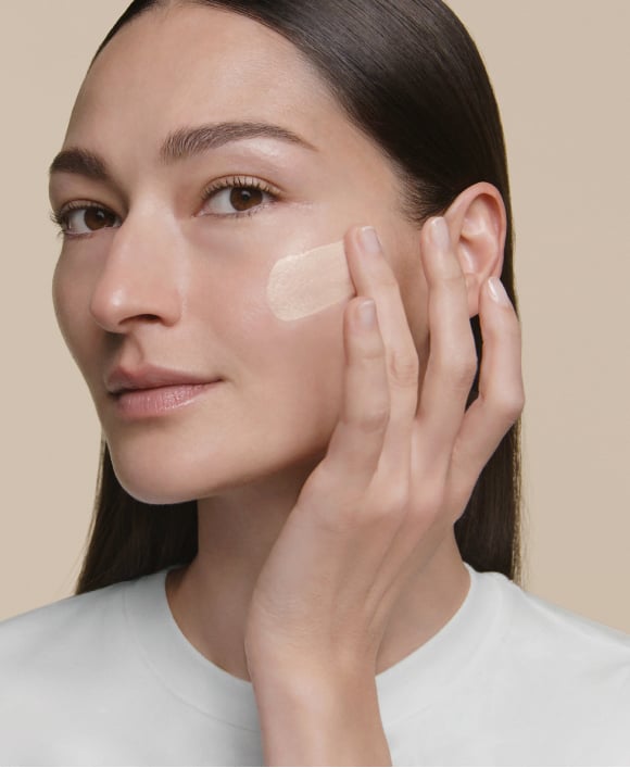 - 在细纹、毛孔等问题区域少量分次涂抹,并以指尖拍匀。